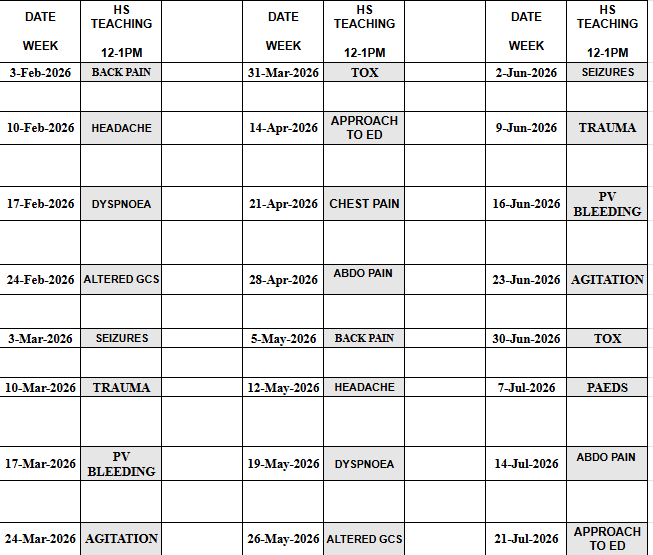 Standard rotation of topics see table at bottom of page- links to education resources found in HOUSE SURGEON SESSIONS dropdown above
