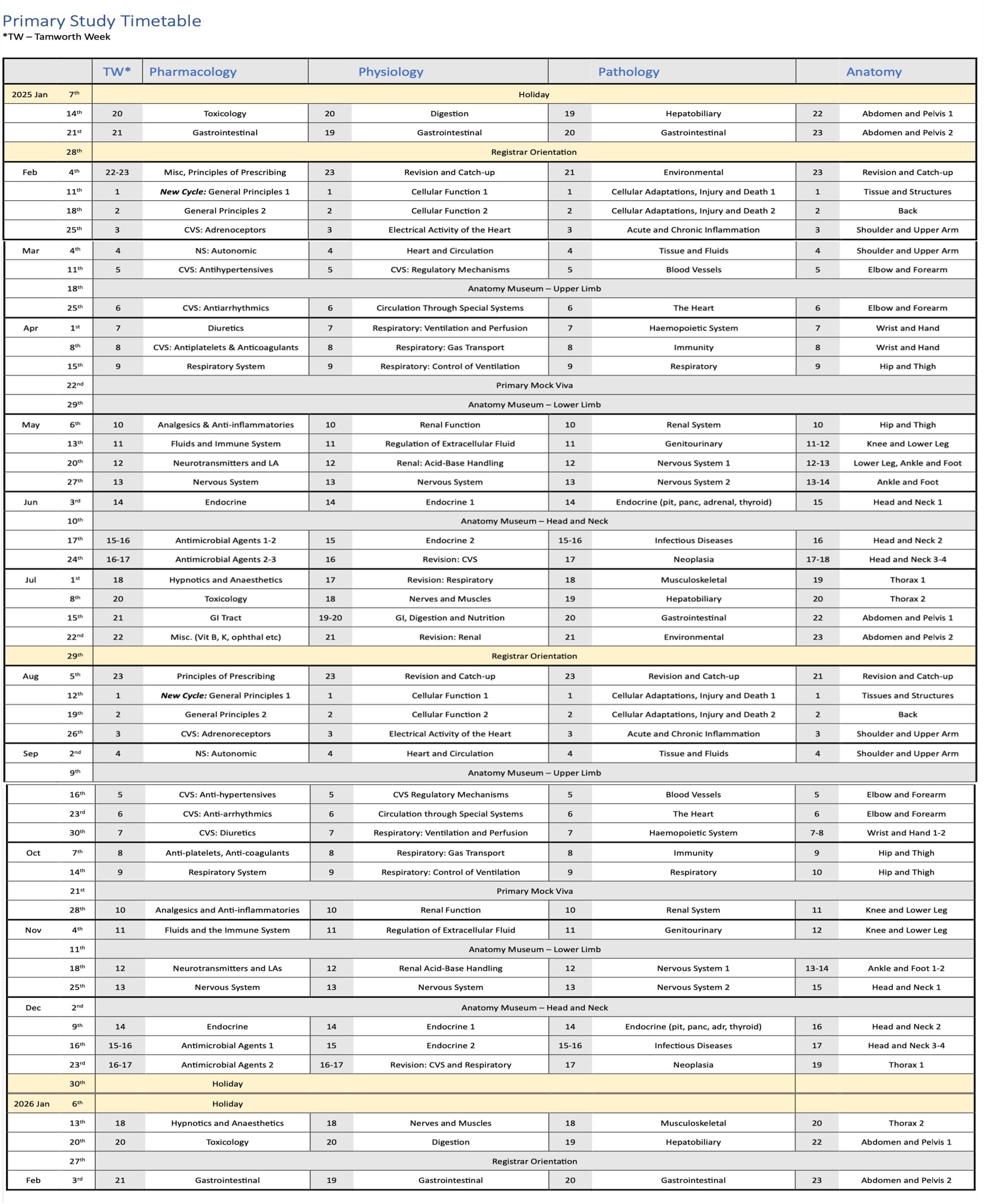 Primary Timetable 2025